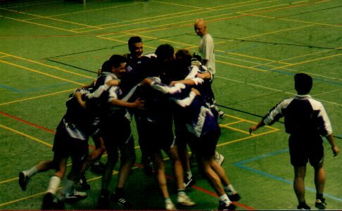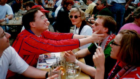 Einzug ins Finale beim 1. eigenen Turnier am 17.5.1998, Brezel im Hintergrund ist ebenso erfreut !