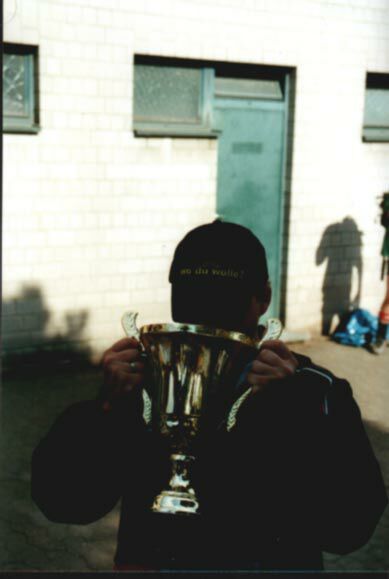 Ein sehr durstiger Zeitgenosse ( Andi S. ) mit dem Fair-Play-Pokal 2000