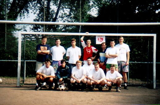 Teamfoto 1. Turnier 1995 : o.v.l.:Kai Möhring (25), Carsten Tüller (5), André Staudt, Sascha Wrobel (11), Marc Spranger (8), André Mengel (7), Michael Solbach (2) /u.v.l.: