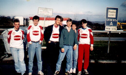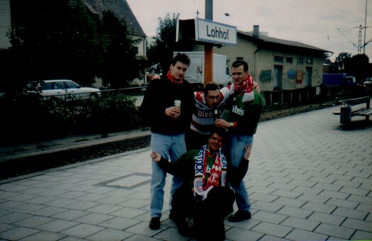 Auf dem Weg zu den Stuttgarter Kickers 1992/1993, v.l. : Andi S., Carsten, Kai, T.Peters, T.Frolik, Branca, und Lothar Mohr