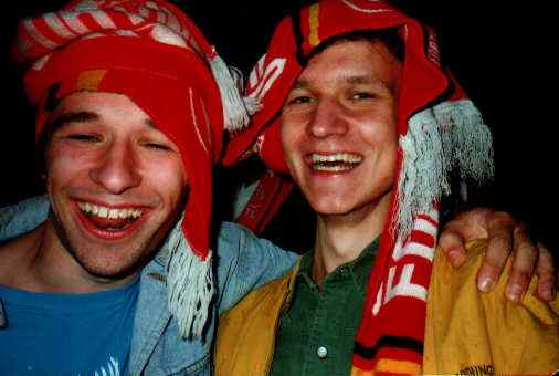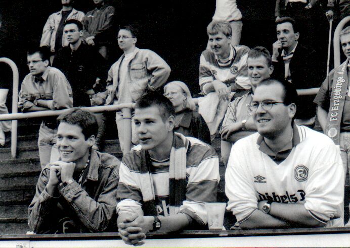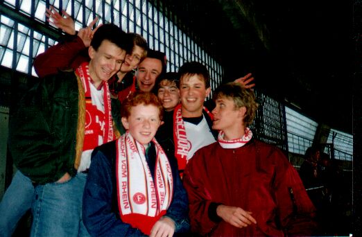 Im alten Rheinstadion, Block 36, v.l.: Carsten, T.Frolik, Marc, Branca, Kai, T. Peters, vorne : Marcus von Bernem